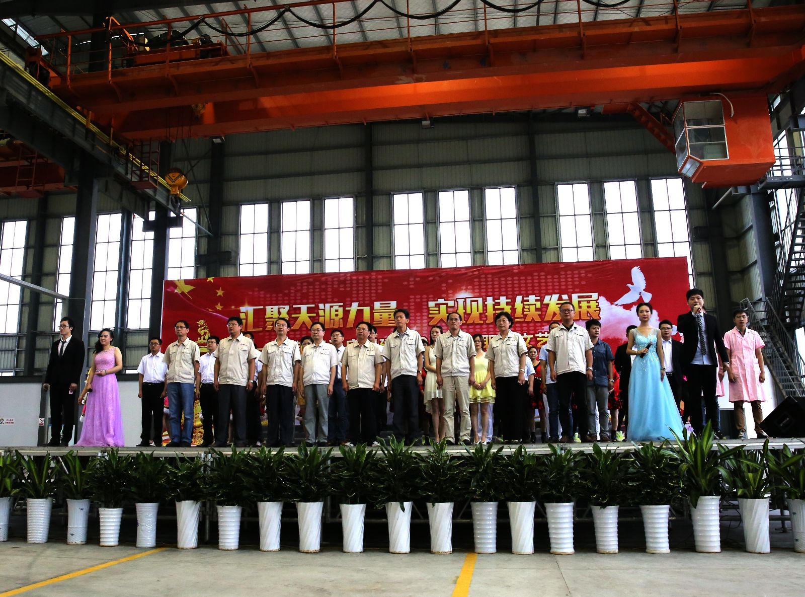 為慶祝建黨94周年(nian),充分展(zhan)現(xian)公司(si)成(cheng)立以來的(de)(de)輝煌成(cheng)就、廣大(da)(da)干部(bu)員(yuan)工干事(shi)創(chuang)業的(de)(de)精神風貌(mao),弘揚(yang)正能量(liang)(liang),6月27日上(shang)午,由中鋼(gang)天源(yuan)黨委(wei)主(zhu)辦,黨群(qun)工作部(bu)、工會(hui)、團委(wei)協辦的(de)(de)“匯聚天源(yuan)力(li)量(liang)(liang)、實現(xian)持續發展(zhan)——中鋼(gang)天源(yuan)慶祝建黨94周年(nian)職(zhi)工文藝(yi)匯演(yan)”在公司(si)新區隆重(zhong)舉行。公司(si)領導班(ban)子及高管,各(ge)(ge)單(dan)位、各(ge)(ge)部(bu)門助(zhu)理(li)以上(shang)中層干部(bu),退(tui)休(xiu)老同志代表(biao),在公司(si)的(de)(de)人大(da)(da)代表(biao)、政(zheng)協委(wei)員(yuan),公司(si)第二屆職(zhi)代會(hui)、工代會(hui)代表(biao),公司(si)成(cheng)立以來在各(ge)(ge)條(tiao)戰線上(shang)獲得榮譽表(biao)彰的(de)(de)先進模范人物代表(biao)共(gong)200余人觀(guan)看了演(yan)出(chu)。