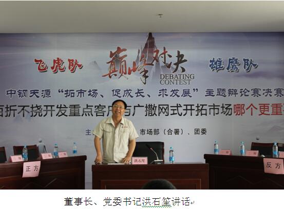 隨后,公(gong)(gong)(gong)司領導(dao)和嘉(jia)賓分(fen)別為(wei)(wei)獲獎隊伍和最佳辯手頒(ban)獎。公(gong)(gong)(gong)司董事長(chang)、黨委(wei)書(shu)記(ji)洪(hong)石笙(sheng)在閉幕講話中指出,本次比賽(sai)形式(shi)新(xin)穎,充分(fen)結合了(le)公(gong)(gong)(gong)司“緊貼市(shi)場求(qiu)(qiu)生存(cun)”的(de)(de)(de)(de)(de)管理(li)理(li)念,為(wei)(wei)公(gong)(gong)(gong)司踐行“致(zhi)力(li)(li)(li)磁業進步、滿(man)足顧(gu)客需求(qiu)(qiu)”的(de)(de)(de)(de)(de)使命進一步統一了(le)思(si)(si)想、提(ti)高了(le)認識。他強(qiang)調,2017年公(gong)(gong)(gong)司明確了(le)“以(yi)市(shi)場為(wei)(wei)導(dao)向,以(yi)創新(xin)促發展(zhan)”的(de)(de)(de)(de)(de)經營(ying)思(si)(si)路,公(gong)(gong)(gong)司也成(cheng)功取得了(le)證(zheng)監會關于(yu)重組(zu)募集配(pei)套資金的(de)(de)(de)(de)(de)批復,公(gong)(gong)(gong)司發展(zhan)即將邁入(ru)新(xin)的(de)(de)(de)(de)(de)階(jie)段,新(xin)形勢(shi)新(xin)任務(wu)要求(qiu)(qiu)我(wo)們要繼續以(yi)百折不撓的(de)(de)(de)(de)(de)精神去(qu)開拓(tuo)市(shi)場,要以(yi)廣撒網式(shi)的(de)(de)(de)(de)(de)精神去(qu)開發客戶(hu),要在新(xin)的(de)(de)(de)(de)(de)行動(dong)上去(qu)實(shi)(shi)現(xian)好(hao)的(de)(de)(de)(de)(de)品(pin)(pin)質,通過這(zhe)種好(hao)品(pin)(pin)質使我(wo)們的(de)(de)(de)(de)(de)核(he)心競爭力(li)(li)(li)得到(dao)強(qiang)化(hua)、鞏(gong)固(gu)和提(ti)高,廣大青年員工(gong)要加(jia)強(qiang)學習,培(pei)養能力(li)(li)(li),把我(wo)們的(de)(de)(de)(de)(de)理(li)念推向客戶(hu),以(yi)實(shi)(shi)際行動(dong)踐行與傳承公(gong)(gong)(gong)司發展(zhan),為(wei)(wei)實(shi)(shi)現(xian)中鋼天源(yuan)早日成(cheng)為(wei)(wei)“國內(nei)一流、國際知名(ming)”的(de)(de)(de)(de)(de)創新(xin)型企業而努力(li)(li)(li)奮斗。