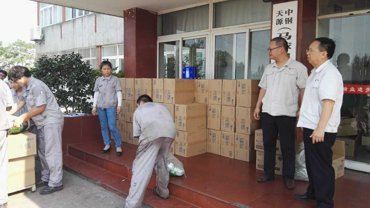 7月(yue)17日(ri)-19日(ri),公司(si)領導(dao)班(ban)子帶隊(dui)對(dui)各(ge)生(sheng)產(chan)單(dan)位進行(xing)了安全(quan)檢查(cha)(cha),公司(si)領導(dao)要(yao)求,各(ge)單(dan)位要(yao)加強對(dui)高溫(wen)(wen)(wen)(wen)作(zuo)業“安全(quan)生(sheng)產(chan)”執行(xing)情況的(de)監督(du)檢查(cha)(cha),必(bi)須(xu)本著對(dui)廣大一線員工(gong)安全(quan)、健康高度負責(ze)的(de)態度,加強隱患排查(cha)(cha),落實好一線員工(gong)防(fang)暑降(jiang)溫(wen)(wen)(wen)(wen)活動;與此同(tong)時,公司(si)工(gong)會(hui)(hui)精心選購了防(fang)暑降(jiang)溫(wen)(wen)(wen)(wen)物品(pin),由公司(si)董事長、黨委(wei)書記(ji)洪(hong)石(shi)笙、黨委(wei)副書記(ji)、紀委(wei)書記(ji)、工(gong)會(hui)(hui)主(zhu)席亞(ya)海斌帶頭組成慰問組,深入到生(sheng)產(chan)現(xian)場,為員工(gong)發(fa)(fa)放(fang)必(bi)要(yao)的(de)防(fang)暑降(jiang)溫(wen)(wen)(wen)(wen)用(yong)品(pin)和(he)藥品(pin),每到一處,公司(si)領導(dao)都詳細詢問各(ge)單(dan)位生(sheng)產(chan)、后勤(qin)保(bao)障等(deng)情況和(he)防(fang)暑降(jiang)溫(wen)(wen)(wen)(wen)的(de)具體措施,截止到目前,公司(si)工(gong)會(hui)(hui)共發(fa)(fa)放(fang)防(fang)暑降(jiang)溫(wen)(wen)(wen)(wen)用(yong)品(pin)折合資金(jin)6萬余元,發(fa)(fa)放(fang)人數850人。