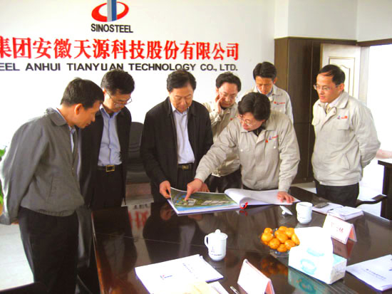 中鋼集團黨委書記張涵光一行蒞臨中鋼天源指導工作并對開展創先爭優活動情況進行點評