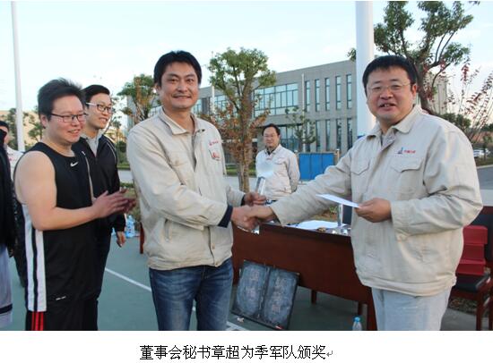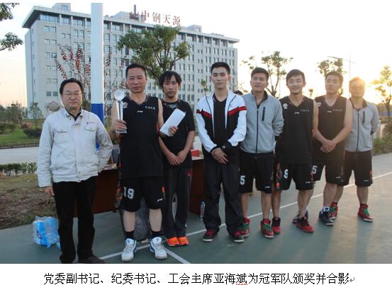 11月11日(ri)下午,中鋼天源第七(qi)屆(jie)職工籃(lan)球聯賽在隆(long)重的頒獎(jiang)儀式中落(luo)下帷幕,公司黨(dang)委副書(shu)記、紀委書(shu)記、工會主席(xi)亞海斌到(dao)場觀(guan)看(kan)比(bi)賽并為冠軍(jun)(jun)(jun)頒獎(jiang)。公司副總經理(li)余進、董事(shi)會秘(mi)書(shu)章超分別為亞軍(jun)(jun)(jun)、季(ji)軍(jun)(jun)(jun)頒獎(jiang)。