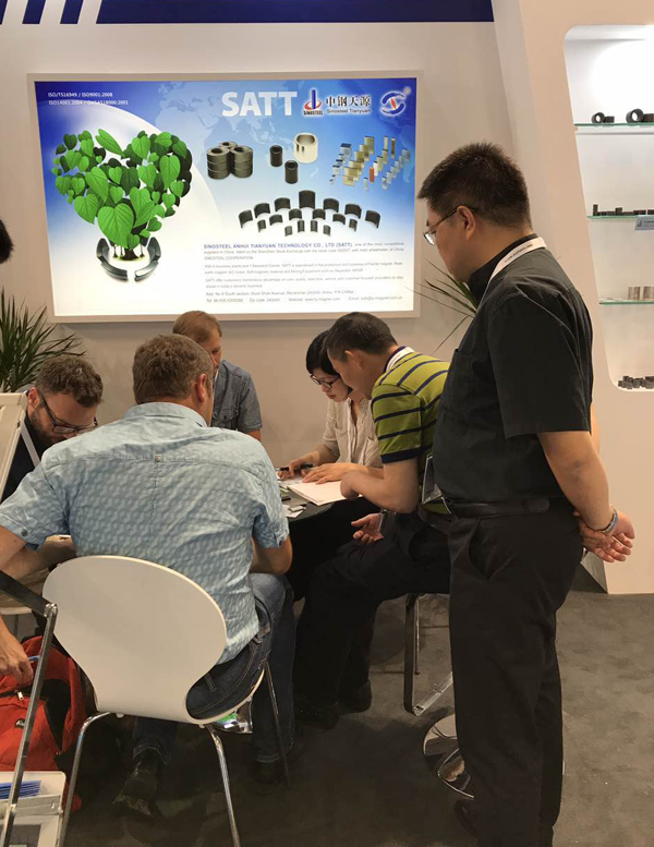 本次(ci)展會(hui),中鋼天(tian)源通過特裝展臺重點展出了鐵氧體(ti)磁(ci)瓦(wa)、釹(nv)鐵硼磁(ci)體(ti)和鐵氧體(ti)多極(ji)磁(ci)環,成功吸引了新(xin)老客戶(hu)前來咨詢洽談。此次(ci)展會(hui),不僅展示(shi)了良(liang)好的企(qi)業形象,提高了品牌(pai)的知(zhi)名度,同(tong)時也(ye)穩定、深化了客戶(hu)關(guan)系,結識(shi)了大量的潛(qian)在客戶(hu),為今后國(guo)際市場的開拓奠定了良(liang)好的基(ji)礎(chu)。